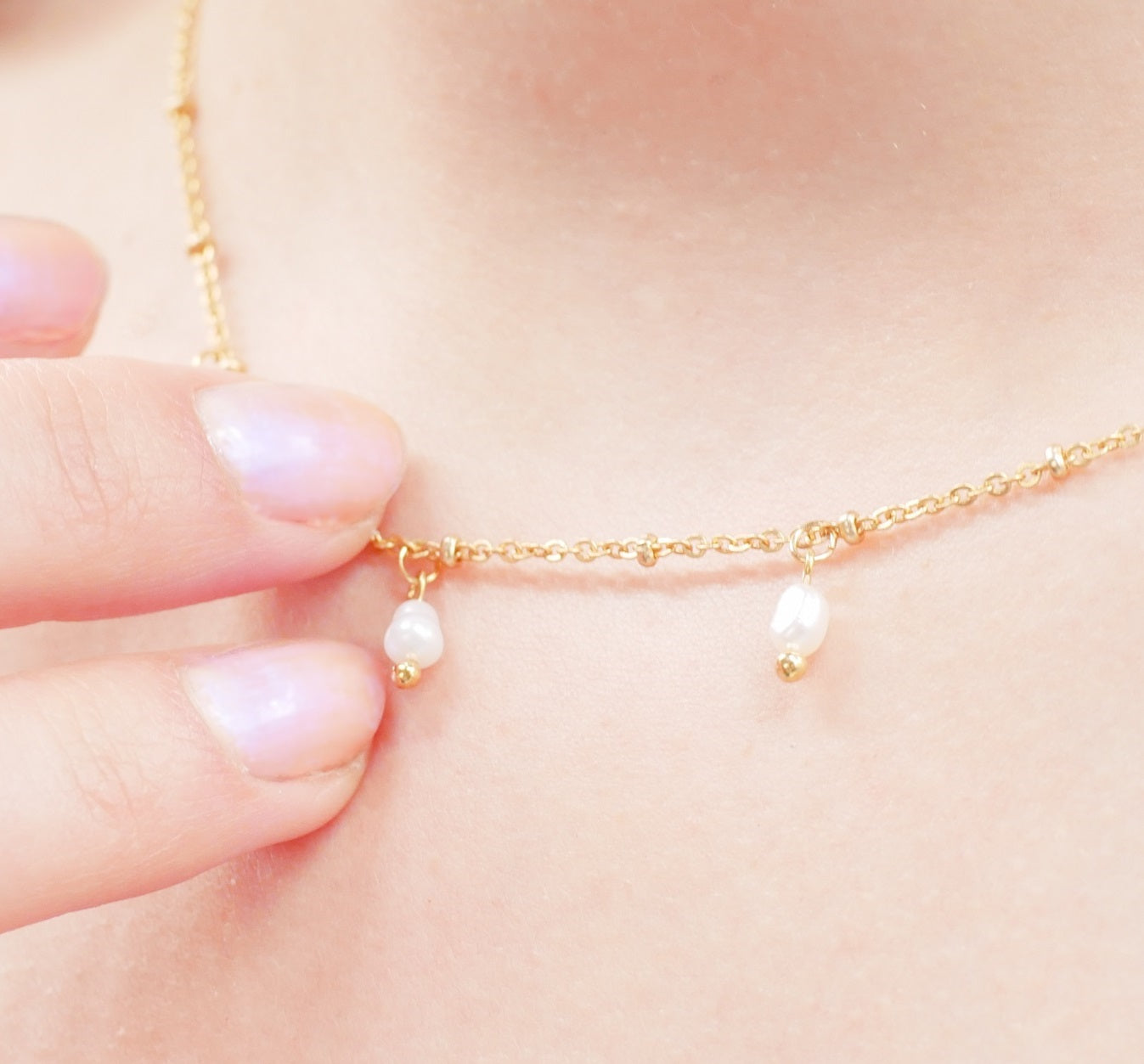 Die zarte Kette aus der "Freshwater Pearls" Kollektion überzeugt mit ihren feinen Süßwasserzuchtperlen. Die Kombination aus feinem Metall und echten Perlen macht das vergoldete Schmuckstück so besonders.