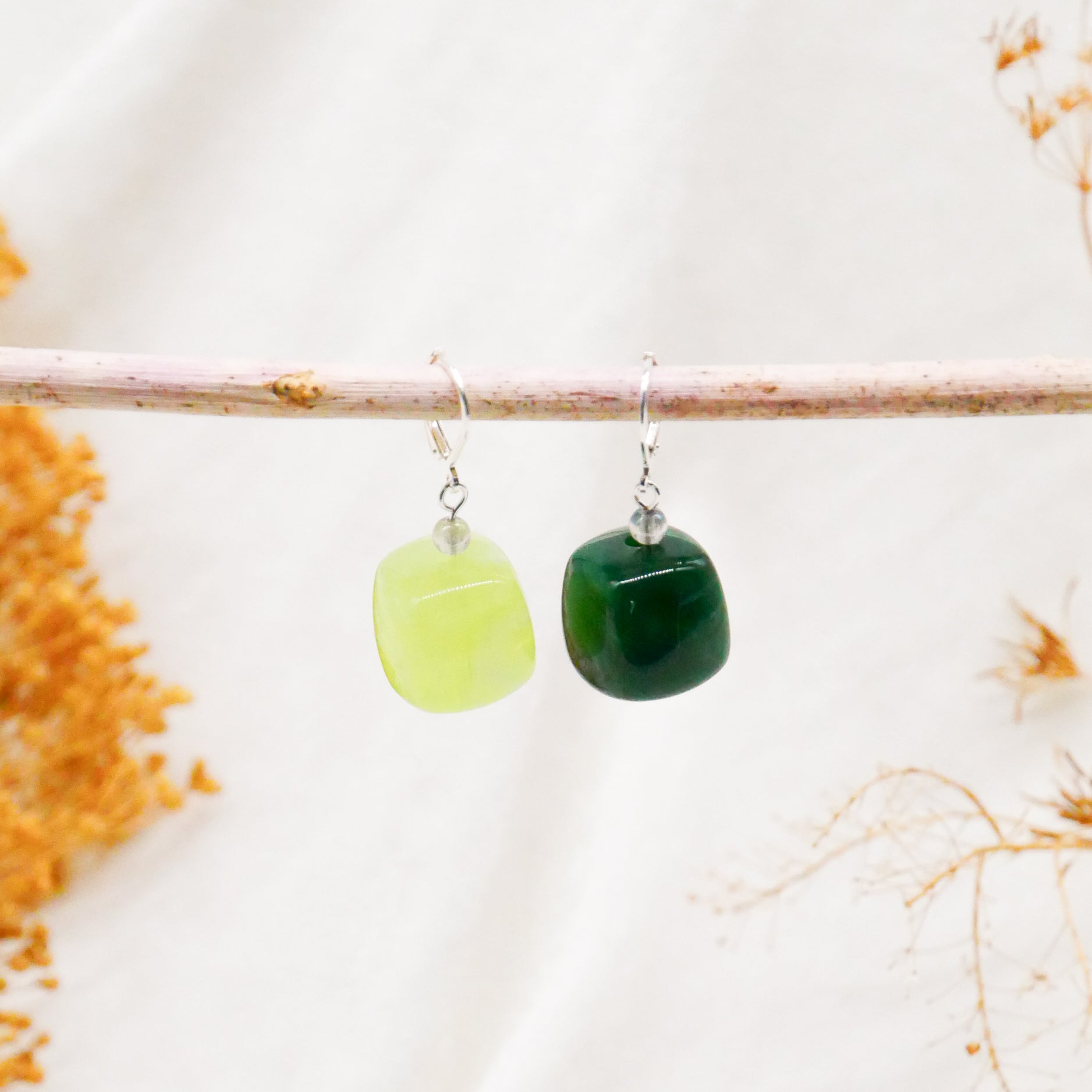 Diese Ohrhänger bringen sofort Frühlings- und Sommerlaune in jedes Outfit. Die quadratischen Resin-Perlen schimmern in zwei unterschiedlichen Farbtönen und verleihen jedem Paar einen individuellen, lebendigen Charakter.