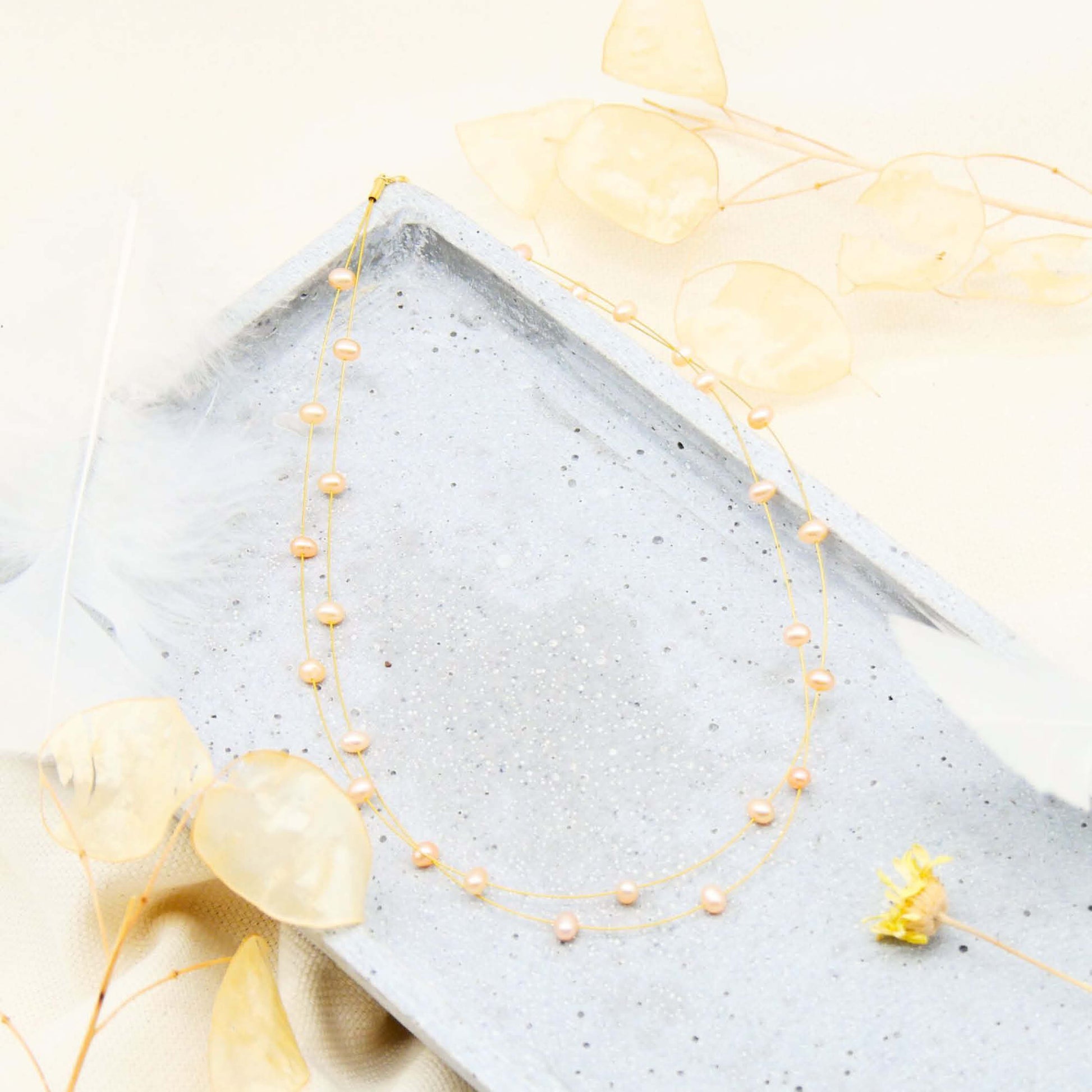 Echte Süßwasserzuchtperlen sind ein Material was wir aufgrund der Eleganz und Schönheit schon seit vielen Jahren zum Designen unserer Ketten und Ohrringe heranziehen. Diese bezaubernde Kette besticht mit ihrem schlichten Design und ihrer natürlichen Farbgebung und machen jedes Outfit zu einem echten Hingucker.