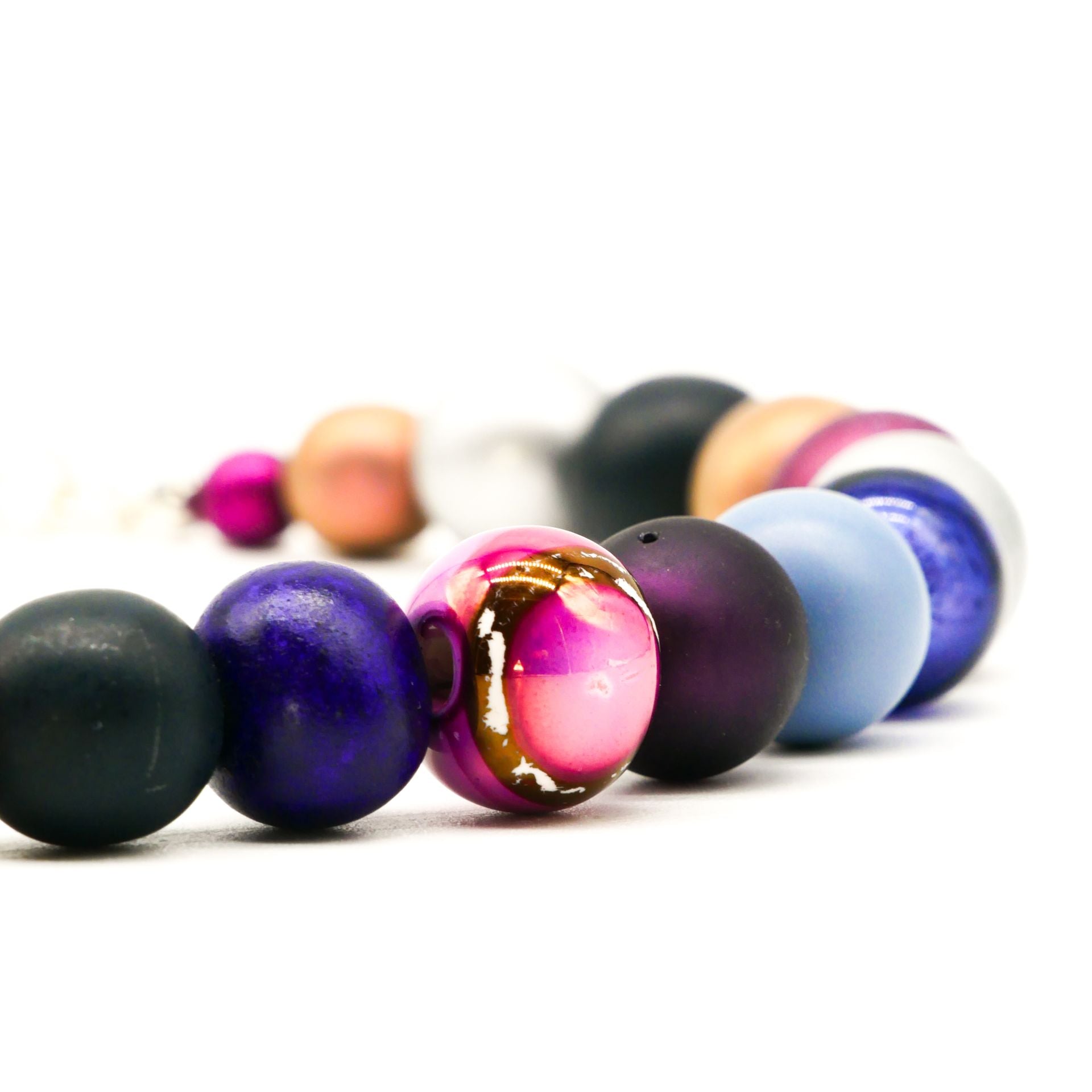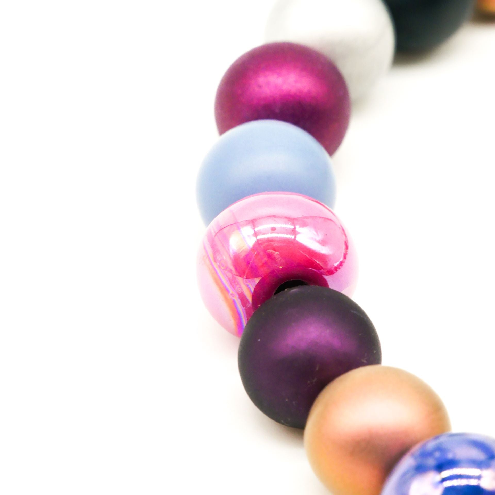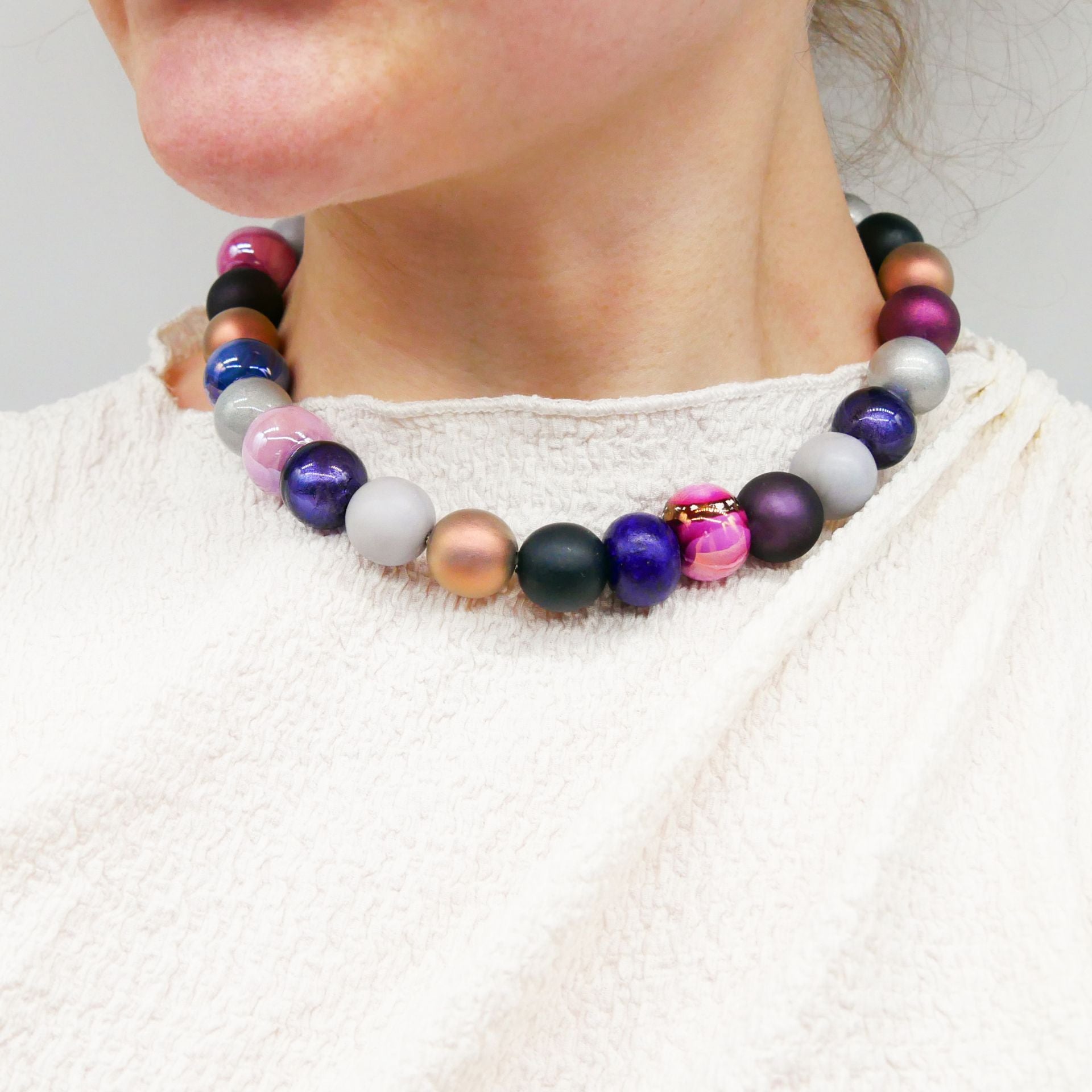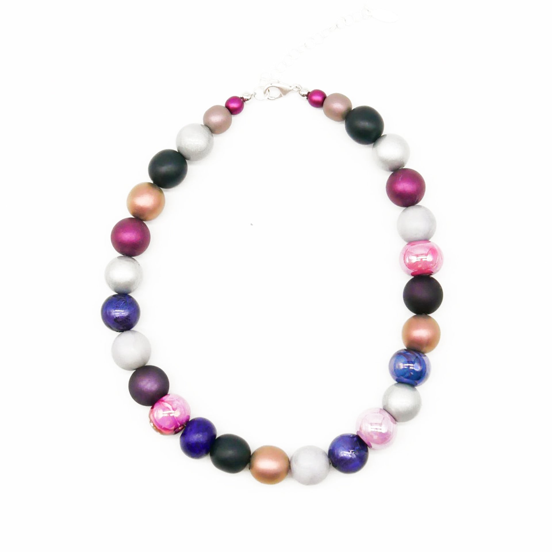 Diese Kette verzaubert mit ihrer harmonischen Farbkomposition aus zarten Lilatönen. Sie strahlt eine feine Balance zwischen Verspieltheit und Eleganz aus und setzt sanfte Farbakzente, die jedes Outfit besonders machen.
