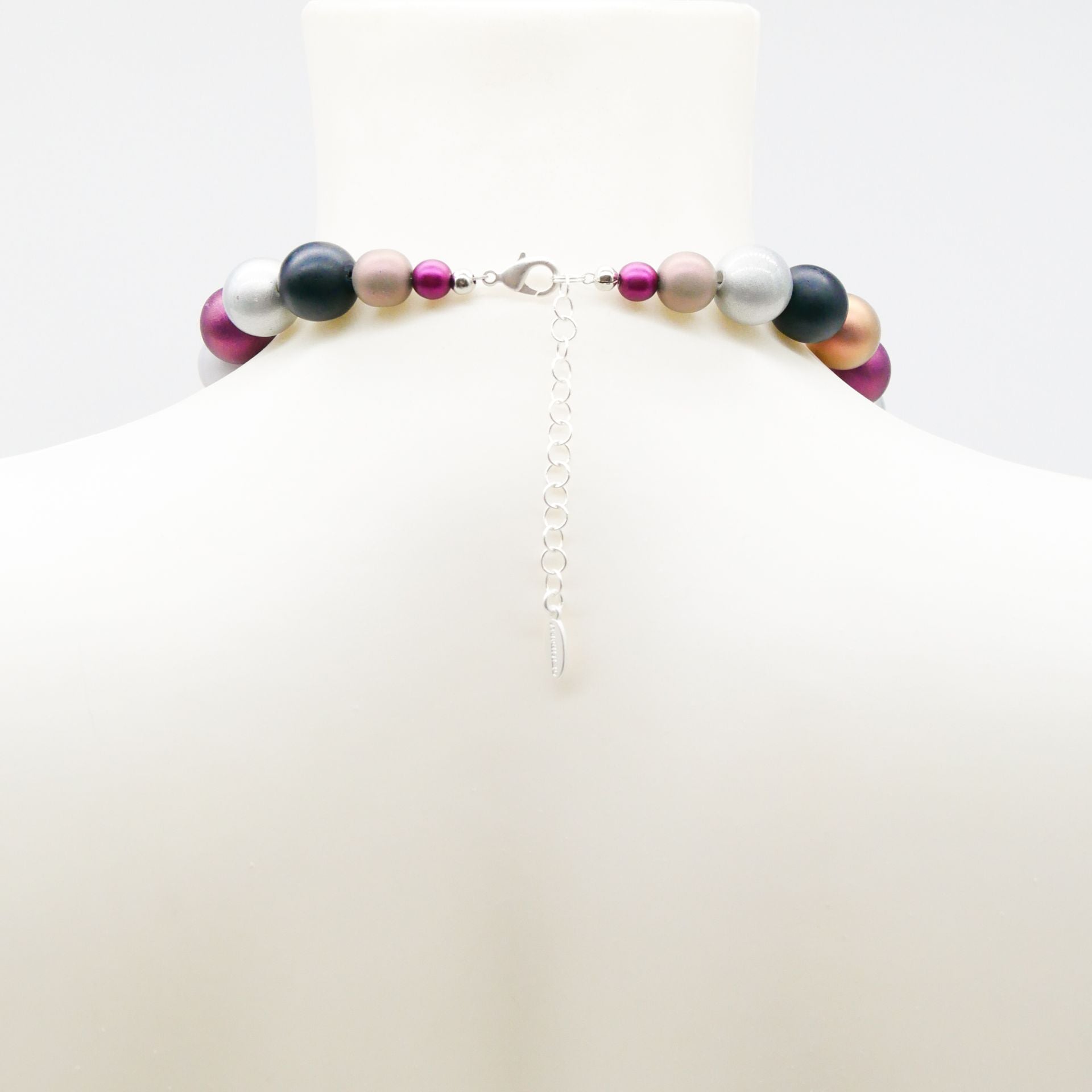 Der vielseitige Materialmix aus unterschiedlichen Perlenarten verleiht der Kette eine lebendige Struktur und einen dezenten Glanz.